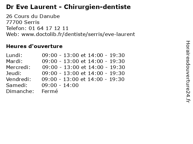 | Lundi | 09:00-13:00 et 14:00-19:30 |