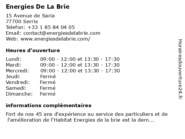 | Mardi | 09:00-12:00 et 13:30-17:30 |