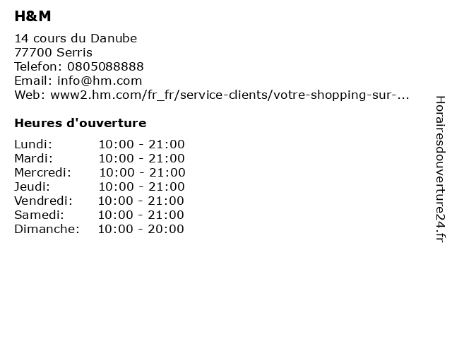 2 H&M (Distance: 13,21 km) 3 Avenue Roland Moreno, 77124 Chauconin-Neufmontiers enfants, femme, h&m, homme, mode 3 H&M (Distance: 16,71 km) 234 Boulevard du Mont d'Est, 93193 Noisy-le-Grand boutique, h&m, mode, prêt à porter, vêtements 4 H&M (Distance: 16,92 km) 33 Avenue Champlain, 94430 Chennevieres sur Marne femme, h&m, jeans, mode, pantalons, tendances, vetements 5 Naf Naf (Distance: 0,00 km) 14 cours du Danube, 77700 Serris accessoires, habillement, mode, naf, nafnaf, vetements 6 Claire's (Distance: 0,00 km) 14 cours du Danube, 77700 Serris accessoires, barrettes, bijoux, claire's, fantaisies, mode, vernis |