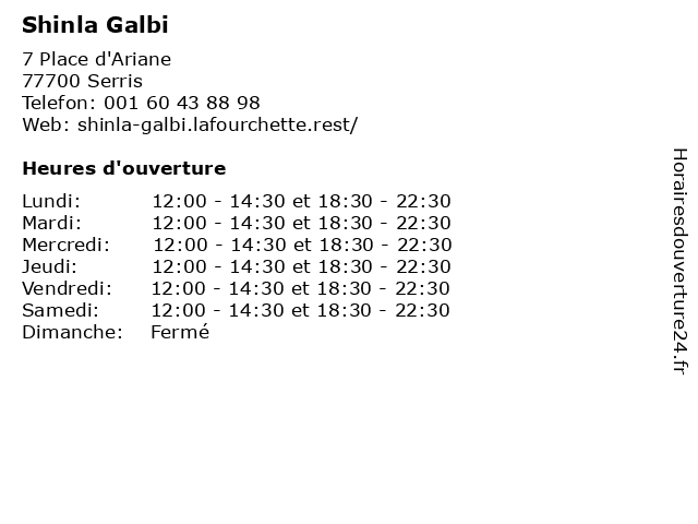 | Samedi | 12:00-14:30 et 18:30-22:30 |