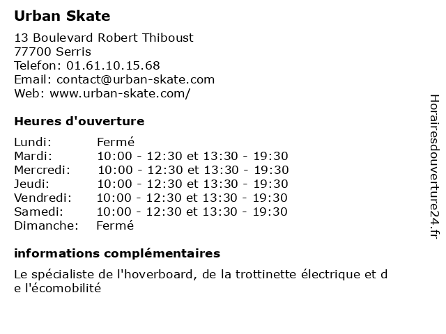 | Samedi | 10:00-12:30 et 13:30-19:30 |