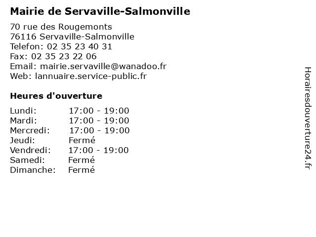 Termes de recherche pour Mairie de Servaville-Salmonville:de, administration, mairie, salmonville, servaville, service public |