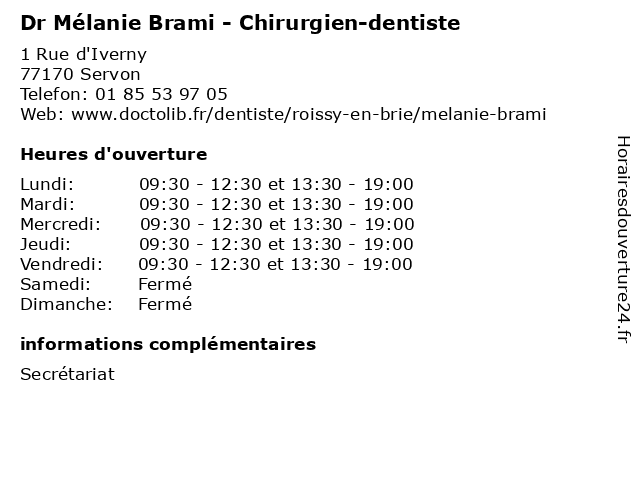 | Lundi | 09:30-12:30 et 13:30-19:00 |