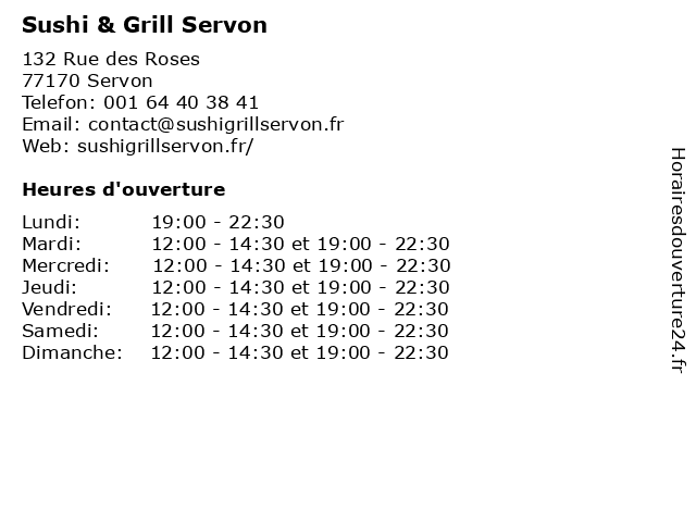 | Dimanche | 12:00-14:30 et 19:00-22:30 |