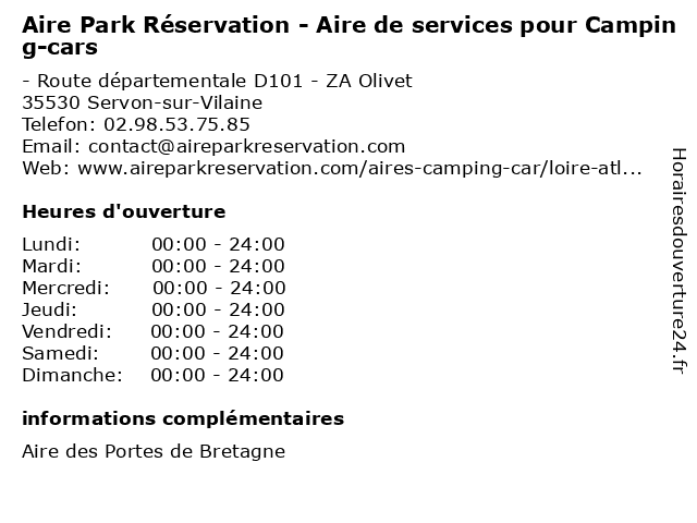 1 Aire Park Réservation - Aire de services pour Camping-cars (Distance: 5,43 km) - ZAC des Jardins de la Bretonnière, 35220 Châteaubourg aire, arrêt, camping, camping car, cars, de, park, pour, repos, réservation, services, trajet, transports 2 Aire Park Réservation - Aire de services pour Camping-cars (Distance: 10,03 km) - Route de la Valette, 35510 Cesson-Sévigné aire, arrêt, camping, camping car, cars, de, park, pour, repos, réservation, services, trajet, transports 3 Aire Park Réservation - Aire de services pour Camping-cars (Distance: 13,94 km) - Rue d'Orson, 35770 Vern-sur-Seiche aire, arrêt, camping, camping car, cars, de, park, pour, repos, réservation, services, trajet, transports 4 Aire Park Réservation - Aire de services pour Camping-cars (Distance: 14,36 km) - Rue du Professeur Maurice Audin, 35700 Rennes aire, arrêt, camping, camping car, cars, de, park, pour, repos, réservation, services, trajet, transports 5 Aire Park Réservation - Aire de services pour Camping-cars (Distance: 15,59 km) - Rue de la Chaine, 35140 Saint-Aubin-du-Cormier aire, arrêt, camping, camping car, cars, de, park, pour, repos, réservation, services, trajet, transports 6 Aire Park Réservation - Aire de services pour Camping-cars (Distance: 17,80 km) - Le Hardier, 35150 Janzé aire, arrêt, camping, camping car, cars, de, park, pour, repos, réservation, services, trajet, transports |