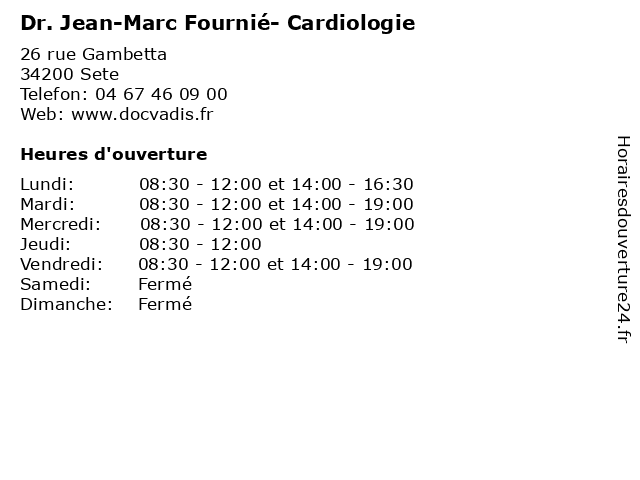 1 Dr. Jean-Marc Fournié- Cardiologie (Distance: 0,00 km) 26 rue Gambetta, 34200 Sete cardiologie, consultation, docteur, dr., fournié, jean, marc, santé 2 Dr. Jean-Marc Fournié- Cardiologie (Distance: 0,00 km) 26 rue Gambetta, 34200 Sete cardiologie, consultation, docteur, dr., fournié, jean, marc, santé 3 Maître Jean-Marc Noyer - Avocat (Distance: 0,33 km) 10 rue du Palais, 34200 Sete avocat, avocate, avocats, civils, droits, jean, juridiques, marc, maître, noyer 4 Dr Jean-Marc Forsans - Médecin généraliste (Distance: 0,59 km) 22 Rue du 14 Juillet, 34200 Sète consultation, docteur, dr, forsans, généraliste, jean, marc, med, médecin, traitement 5 Dr Jean Marc Frey - Cardiologue (Distance: 0,78 km) 220 Avenue du Maréchal Juin, 34200 Sète cardiologue, consultation, docteur, dr, frey, jean, marc, med, médecin, médecine, secrétariat, traitement 6 |