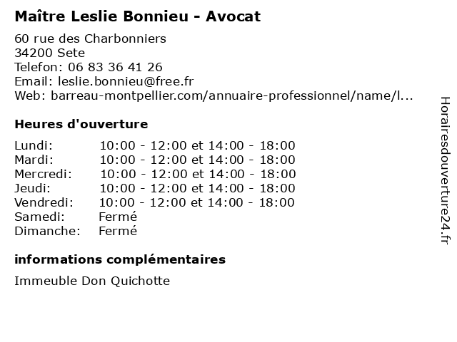 | Lundi | 10:00-12:00 et 14:00-18:00 |