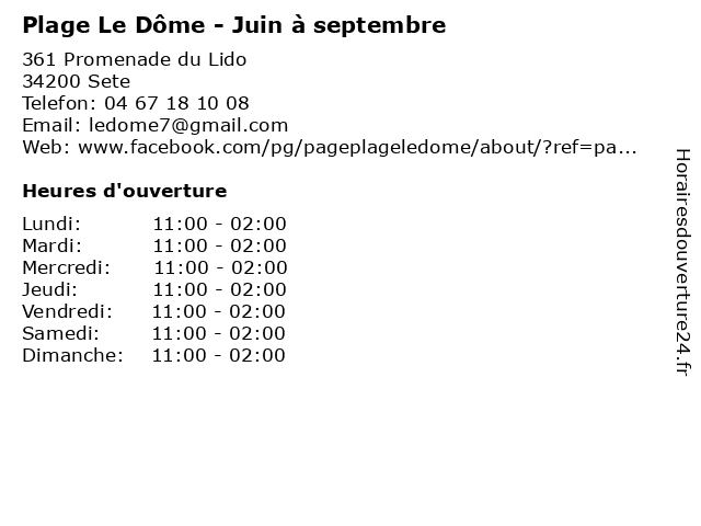 | Samedi | 11:00-02:00 |
