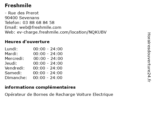 1 Freshmile (Distance: 2,37 km) - Rue de la Gare TGV, 90400 Meroux-Moval borne, de, freshmile, point, recharge, voitures, électrique 2 Freshmile (Distance: 3,45 km) - Voie du Tram, 90700 Châtenois-les-Forges borne, de, freshmile, point, recharge, voitures, électrique 3 Freshmile (Distance: 3,61 km) 4 Rue du Dr Frery, 90400 Danjoutin borne, de, freshmile, point, recharge, voitures, électrique 4 Freshmile (Distance: 5,83 km) - Place de la République, 90000 Belfort borne, de, freshmile, point, recharge, voitures, électrique 5 Freshmile (Distance: 6,03 km) 6 Rue de la Cavalerie, 90000 Belfort borne, de, freshmile, point, recharge, voitures, électrique 6 Freshmile (Distance: 6,80 km) 2 Avenue du Général Leclerc, 90120 Morvillars borne, de, freshmile, point, recharge, voitures, électrique |