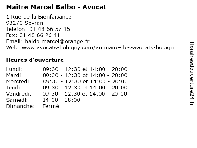 | Mercredi | 09:30-12:30 et 14:00-20:00 |