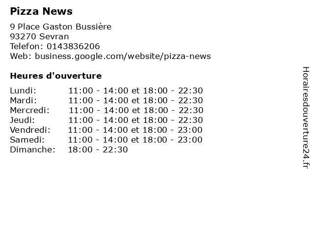 | Mercredi | 11:00-14:00 et 18:00-22:30 |