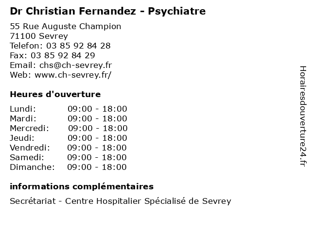 1 Dr Abdelaziz Bader - Psychiatre (Distance: 0,00 km) 55 Rue Auguste Champion, 71100 Sevrey abdelaziz, bader, consultation, docteur, dr, med, medecine, medical, médecin, psychiatre, traitement 2 Dr Anne-Cécile Batt - Psychiatre (Distance: 0,00 km) 55 Rue Auguste Champion, 71100 Sevrey anne, batt, cecile, consultation, cécile, docteur, dr, med, medecine, medical, médecin, psychiatre, traitement 3 Dr Wassila Berressa - Psychiatre (Distance: 0,00 km) 55 Rue Auguste Champion, 71100 Sevrey berressa, consultation, docteur, dr, med, medecine, medical, médecin, psychiatre, traitement, wassila 4 Dr Georgiana Carmina Dumitru - Psychiatre (Distance: 0,00 km) 55 Rue Auguste Champion, 71100 Sevrey carmina, consultation, docteur, dr, dumitru, georgiana, med, medecine, medical, médecin, psychiatre, traitement 5 Dr Marie-Suzanne Fauconnet - Psychiatre (Distance: 0,00 km) 55 Rue Auguste Champion, 71100 Sevrey consultation, docteur, dr, fauconnet, marie, med, medecine, medical, médecin, psychiatre, suzanne, traitement 6 Dr Catherine Fernandez - Psychiatre (Distance: 0,00 km) 55 Rue Auguste Champion, 71100 Sevrey catherine, consultation, docteur, dr, fernandez, med, medecine, medical, médecin, psychiatre, traitement |