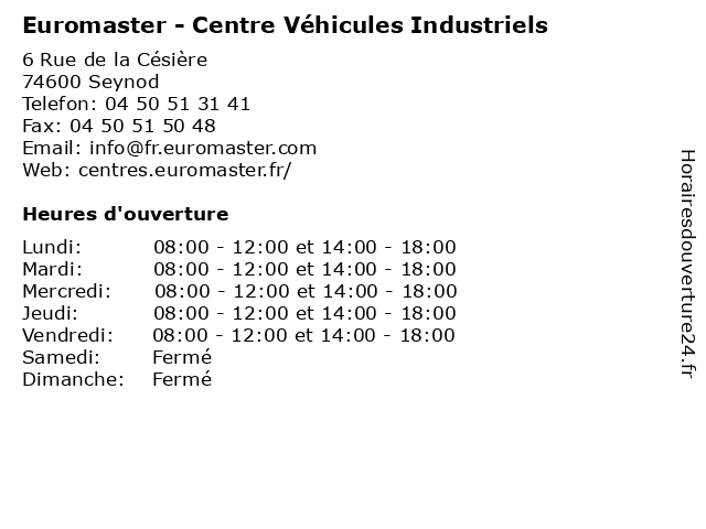 | Samedi | Fermé |