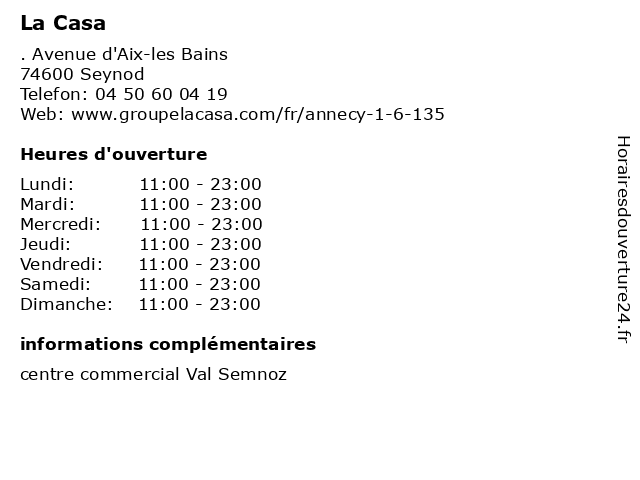 1 La Casa Annecy (Distance: 1,80 km) La Casa Centre Commercial Val Semnoz, 74600 Annecy annecy, casa, restaurants 2 Casa (Distance: 2,72 km) 71 boulevard Costa de Beauregard, 74600 Seynod ameublement, cadeaux, casa, décoration, magasin, maison 3 Restaurant Lac Casa (Distance: 5,65 km) 12 Avenue de Chambéry, 74000 Annecy annecy, casa, cuisine, lac, mexicain, mexicaine, restauation, restaurant, spécialités 5 Casa (Distance: 8,63 km) 9 Rue des Roseaux, 74330 Epagny ameublement, cadeaux, casa, décoration, magasin, maison 6 Casa Piazza (Distance: 12,50 km) 149 Route Des Diacquenods, 74370 St Martin Bellevue casa, jean, paul, piazza, restaurants |
