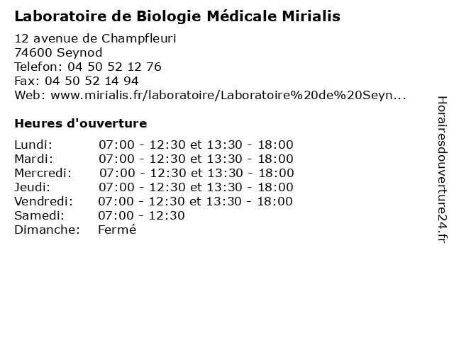 | Lundi | 07:00-12:30 et 13:30-18:00 |