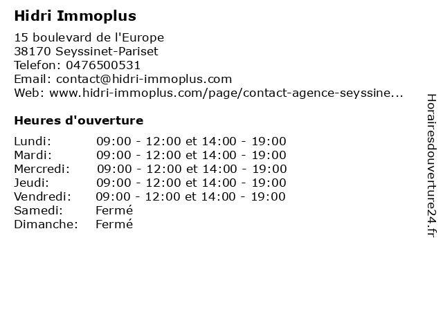 | Lundi | 09:00-12:00 et 14:00-19:00 |