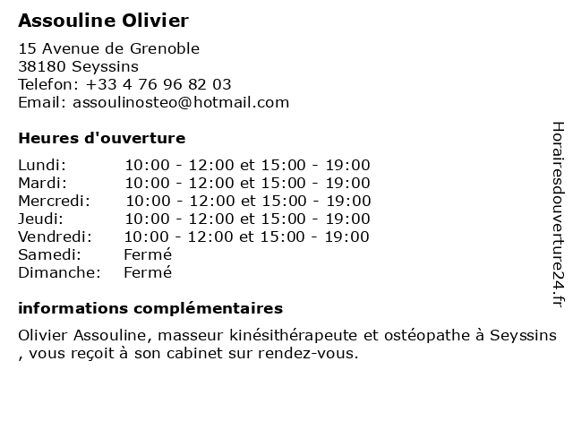 | Lundi | 10:00-12:00 et 15:00-19:00 |