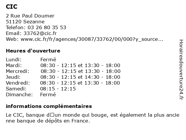 Mercredi | 08:30-12:15 et 13:30-18:00 |