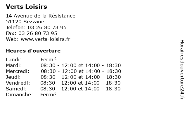 | Samedi | 08:30-12:00 et 14:00-18:30 |