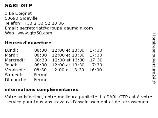 | Lundi | 08:30-12:00 et 13:30-17:30 |