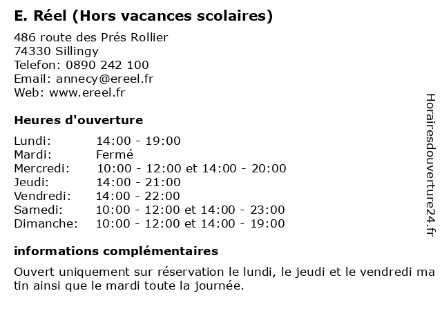 | Dimanche | 10:00-12:00 et 14:00-19:00 |