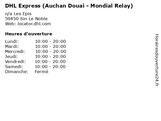 Termes de recherche pour DHL Express (Auchan Douai - Mondial Relay):douai, express, services, auchan, mail, relay, mondial, dhl, logistic, post |