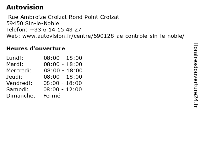 | Dimanche | Fermé |