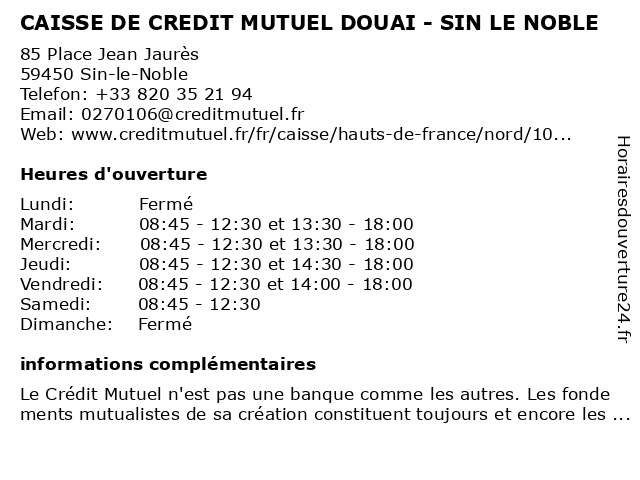Termes de recherche pour CAISSE DE CREDIT MUTUEL DOUAI - SIN LE NOBLE:le, de, douai, noble, sin, crédit, mutuel, caisse |