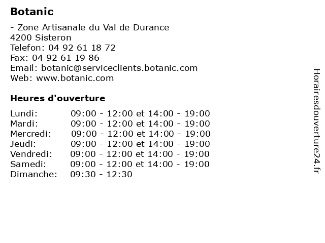| Samedi | 09:00-12:00 et 14:00-19:00 |
