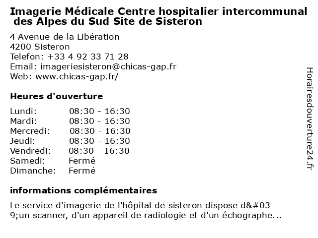 Termes de recherche pour Imagerie Médicale Centre hospitalier intercommunal des Alpes du Sud Site de Sisteron:du, de, sisteron, des, médicale, centre, sud, alpes, site, hospitalier, imagerie, intercommunal |