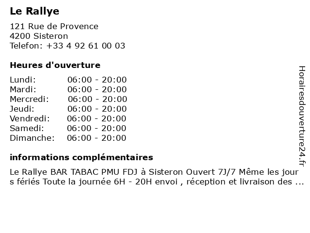 Le Rallye BAR TABAC PMU FDJ à Sisteron Ouvert 7J/7 Même les jours fériés Toute la journée 6H - 20H envoi , réception et livraison des colis Mondial relay cbd.