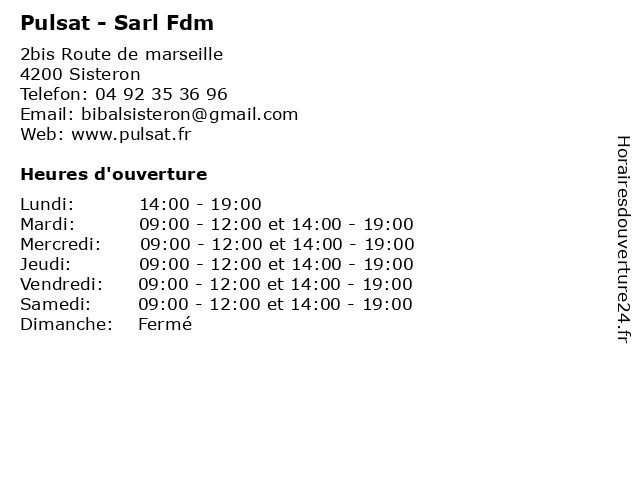 | Samedi | 09:00-12:00 et 14:00-19:00 |
