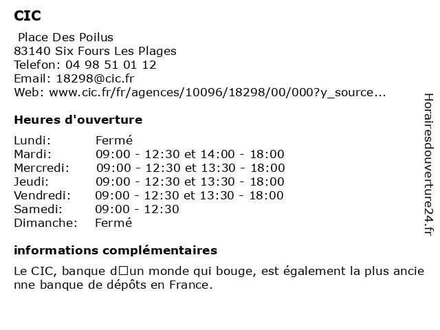 | Mercredi | 09:00-12:30 et 13:30-18:00 |