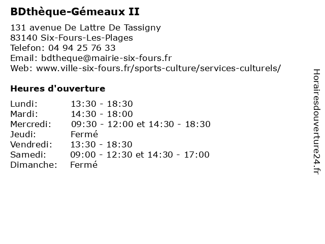 | Mercredi | 09:30-12:00 et 14:30-18:30 |
