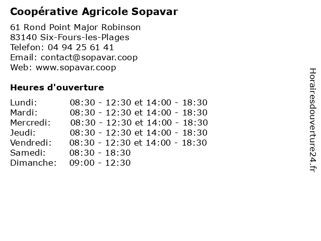 | Lundi | 08:30-12:30 et 14:00-18:30 |