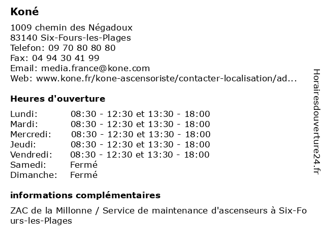 | Lundi | 08:30-12:30 et 13:30-18:00 |