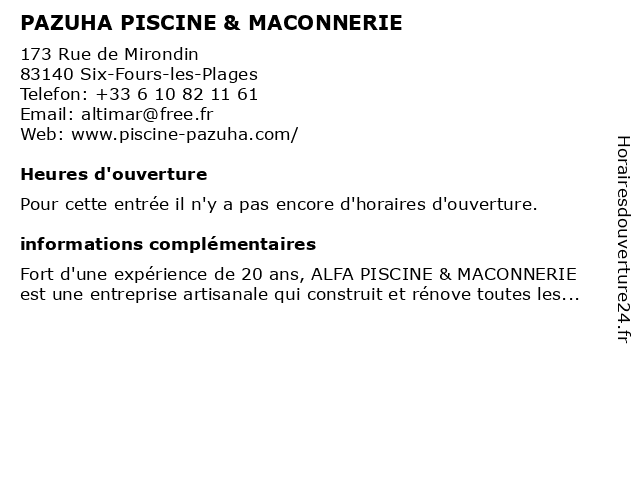 | Appeler PAZUHA PISCINE & MACONNERIE | |