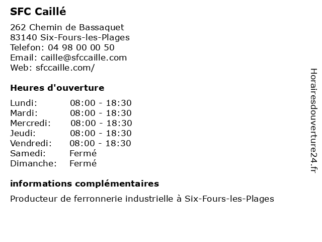1 Groupe SFC (Distance: 0,75 km) 293 route de la Seyne, 83190 Ollioules audit, conseil, expertise comptable, fiscalité, groupe, juridique, paie, sfc, social 2 SERRURERIE FERRONNERIE CHAUDRONNERI (Distance: 0,24 km) 262 Chemin De Bassaquet, 83140 Six Fours les Plages chaudronneri, ferronnerie, serrurerie 3 Balitrand Serrurerie (Distance: 0,53 km) 830 Boulevard de lery, 83500 La seyne sur mer balitrand, la seyne sur mer, serrurerie, serrurier 4 Serrurerie ferronnerie du midi (Distance: 0,70 km) 396 Chemin de Pepiole, 83140 Six-Fours-les-Plages du, ferronnerie, midi, serrurerie 5 BERTOLOTTO ET FILS (Distance: 0,76 km) 159 Allée Helsinki, 83500 La Seyne-sur-Mer bertolotto, créations sur-mesure, et, ferronnerie d'art, ferronnier, fils, garde-corps, pergolas, portail, rampe d'escalier, serrurerie-ferronnerie, serrurier 6 Ferronnerie Maltèse (Distance: 1,22 km) 120 Chemin des Négadoux, 83140 Six-Fours-les-Plages ferronnerie, maltèse |