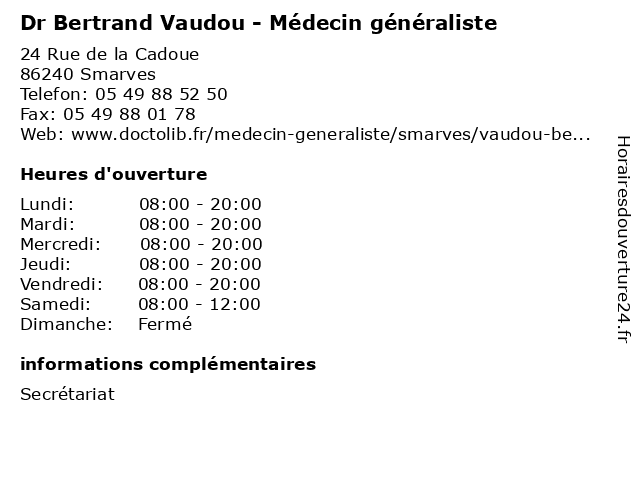 | Vendredi | 08:00-20:00 |