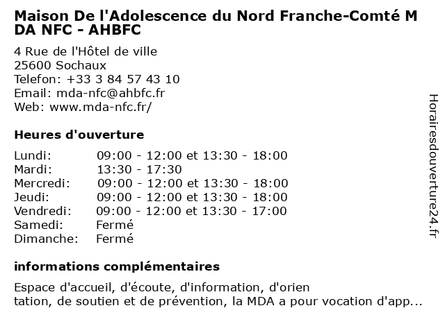 Termes de recherche pour Maison De l'Adolescence du Nord Franche-Comté MDA NFC - AHBFC:du, de, comte, maison, nord, mda, franche, nfc, l'adolescence, ahbfc |