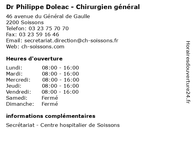 1 Dr Marie-José Marmonier - Chirurgien général (Distance: 0,00 km) 46 avenue du Général de Gaulle, 02200 Soissons chirurgien, consultation, docteur, dr, général, jose, josé, marie, marmonier, med, médecin, traitement 2 Dr Ahmad Mahfoud - Chirurgien général (Distance: 0,11 km) 46 avenue du Général de Gaulle, 02209 Soissons ahmad, chirurgien, consultation, docteur, dr, général, mahfoud, med, médecin, médecine, traitement 3 Dr Yasser Khaddam - Chirurgien général (Distance: 0,11 km) 46 avenue du Général de Gaulle, 02209 Soissons chirurgien, consultation, docteur, dr, général, khaddam, med, médecin, médecine, traitement, yasser 4 Dr Laura Haddad - Chirurgien général (Distance: 0,11 km) 46 avenue du Général de Gaulle, 02209 Soissons chirurgien, consultation, docteur, dr, général, haddad, laura, med, médecin, médecine, traitement 5 Dr Audrey Cagniet - Chirurgien général (Distance: 0,11 km) 46 avenue du Général de Gaulle, 02209 Soissons audrey, cagniet, chirurgien, consultation, docteur, dr, général, med, médecin, médecine, traitement 6 Dr Philippe Clair - ORL (Distance: 0,11 km) 46 avenue du Général de Gaulle, 02209 Soissons clair, consultation, docteur, dr, med, médecin, médecine, orl, philippe, traitement |