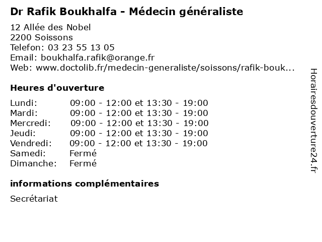 | Mercredi | 09:00-12:00 et 13:30-19:00 |