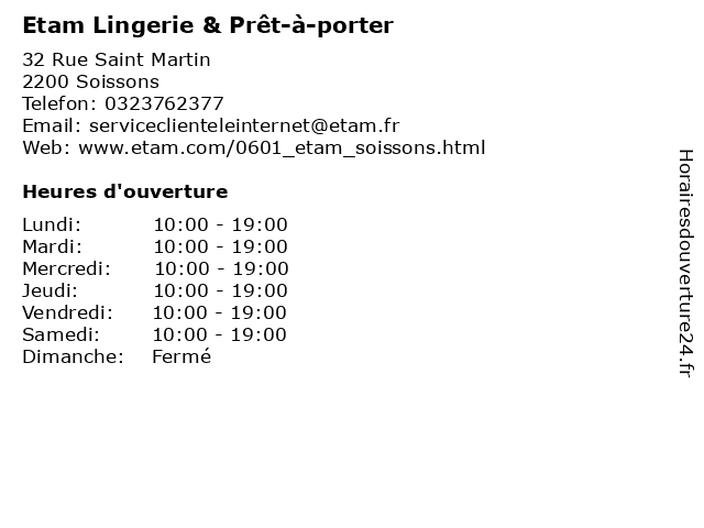 1 Eve Lingerie (Distance: 0,03 km) 38 Rue Saint-Martin, 02200 Soissons boutique, eve, femmes, lingerie, magasin 2 Valège Lingerie (Distance: 0,05 km) 15 Rue Saint Martin, 02200 Soissons corset, culottes, lingerie, magasin, nuisette, valège 3 Déesse & Apollon (Distance: 0,09 km) 56 Rue Saint-Martin, 02200 Soissons apollon, boutique, déesse, femme, lingerie, nuisette, nuit 4 Cléopâtre (Distance: 30,63 km) 69 Rue Eugène Leduc, 02000 Laon cléopâtre, culottes, dessous, femme, lingerie, maillots, nuit 5 Etam Lingerie (Distance: 36,84 km) 7-8 Place du Marché Aux Herbes, 60200 Compiègne etam, femme, habillement, lingerie, mode, nuisette 6 Rosalie Lingerie (Distance: 37,41 km) 5 rue du Général de Gaulle, 02400 Château-Thierry boutique, culottes, dessous, lingerie, nuisettes, rosalie |
