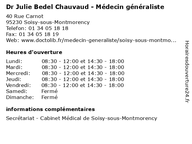 | Lundi | 08:30-12:00 et 14:30-18:00 |
