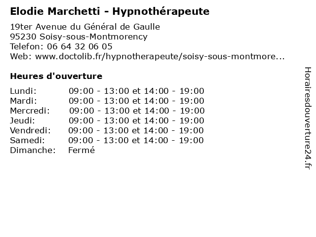 | Lundi | 09:00-13:00 et 14:00-19:00 |