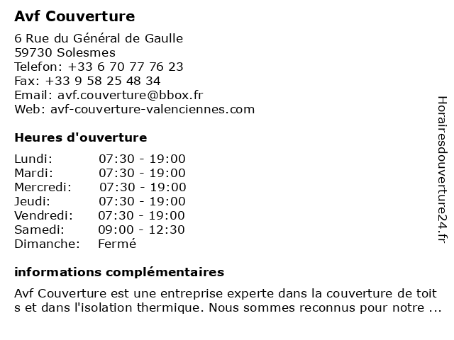 1 Christophe Couverture (Distance: 5,69 km) 12 Rue Prince, 59218 Vendegies-au-Bois christophe, couverture 2 Couverture D'art de L'avesnois (Distance: 5,83 km) 21 A Rue Luthon, 59218 Neuville-en-Avesnois couverture, d'art, de, l'avesnois 6 Cochet Couverture (Distance: 17,31 km) 2 Route Bois de l'Abbaye, 59360 Catillon-sur-Sambre cochet, couverture |