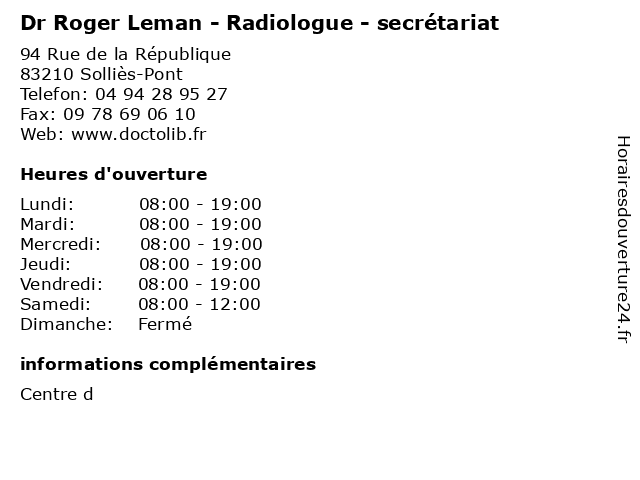 | Lundi | 08:00-19:00 |