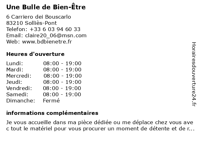 1 Pour Une Mobilité Sereine et Durable - PUMSD (Distance: 2,30 km) 18 Résidence la Calade, 83210 Solliès-Ville association, durable, et, mobilité, pour, pumsd, sereine, une 2 Une Histoire de Famille (Distance: 6,38 km) Av. Camille Desmoulins, 83130 La Garde de, famille, histoire, une 3 Il était une fois (Distance: 6,83 km) 6 allée des quatre chemins, 83130 La Garde crèches, fois, il, services, services à la personne, une, était 4 Une Histoire de Famille (Distance: 7,11 km) 300 Avenue de l'Université, 83160 La Valette-du-Var de, famille, histoire, une 5 Une Histoire de Famille (Distance: 7,34 km) 300 Avenue de l´Université, 83160 La Valette-du-Var 83, avenue, centre, commercial, de, du, famille, histoire, la, une, valette, var 6 ERDF ARE PACA Est Payer une facture ou déclarer une auto-relève (Distance: 11,83 km) . Avenue Edith, 83418 Hyères agences, are, auto, déclarer, electricité, erdf, est, facture, ou, paca, payer, relève, service, services, une, énergie |