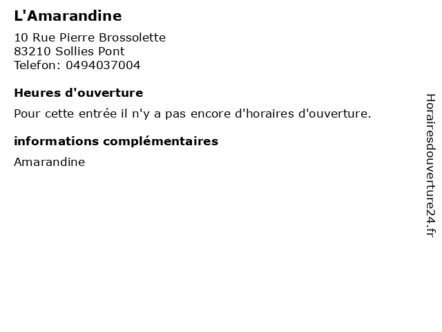 1 L'Amarandine (Distance: 0,01 km) 10 Rue Pierre Brossolette, 83210 Solliès-Pont boisson, l'amarandine, menus, restaurant, restauration |