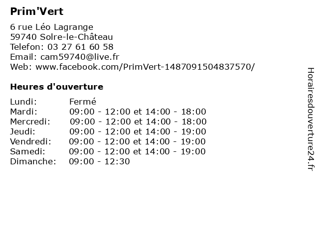 | Samedi | 09:00-12:00 et 14:00-19:00 |